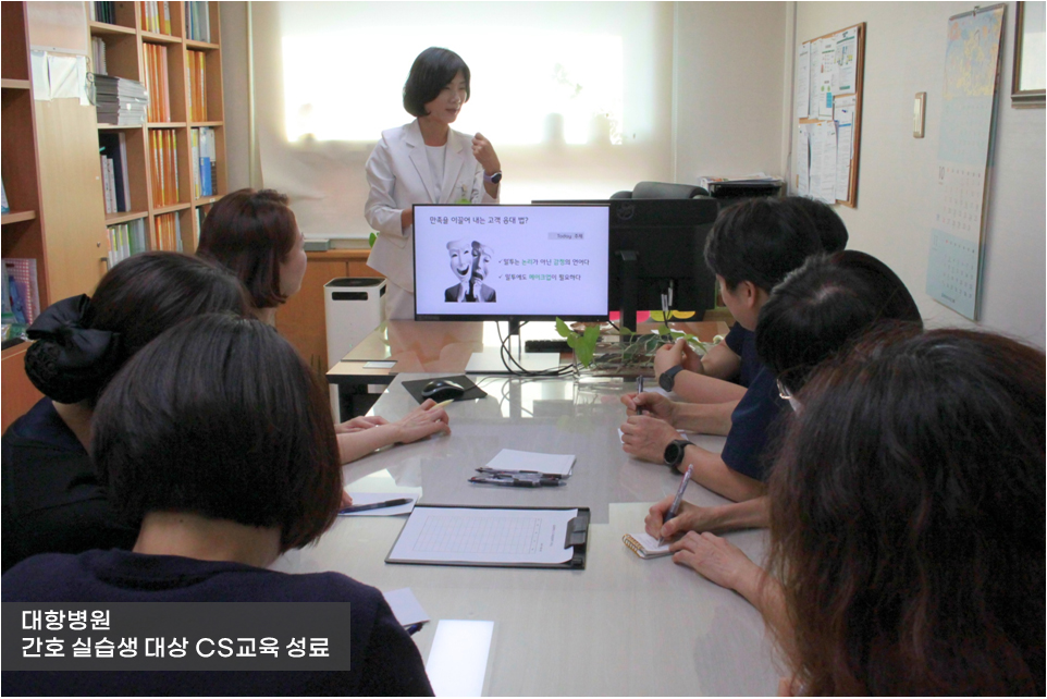 대항병원이 지난 29일(수) 간호조무사 실습 인력을 대상으로 고객만족도 향상을 위한 CS 교육을 진행했습니다.