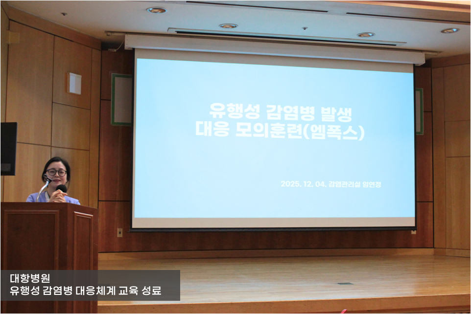 대항병원은 앞으로도 감염병 유행과 같은 위급상황에 대비해 발 빠른 대처가 가능하도록 직원 교육을 실시하고 안전한 병원 환경을 만들기 위해 최선을 다하겠습니다.