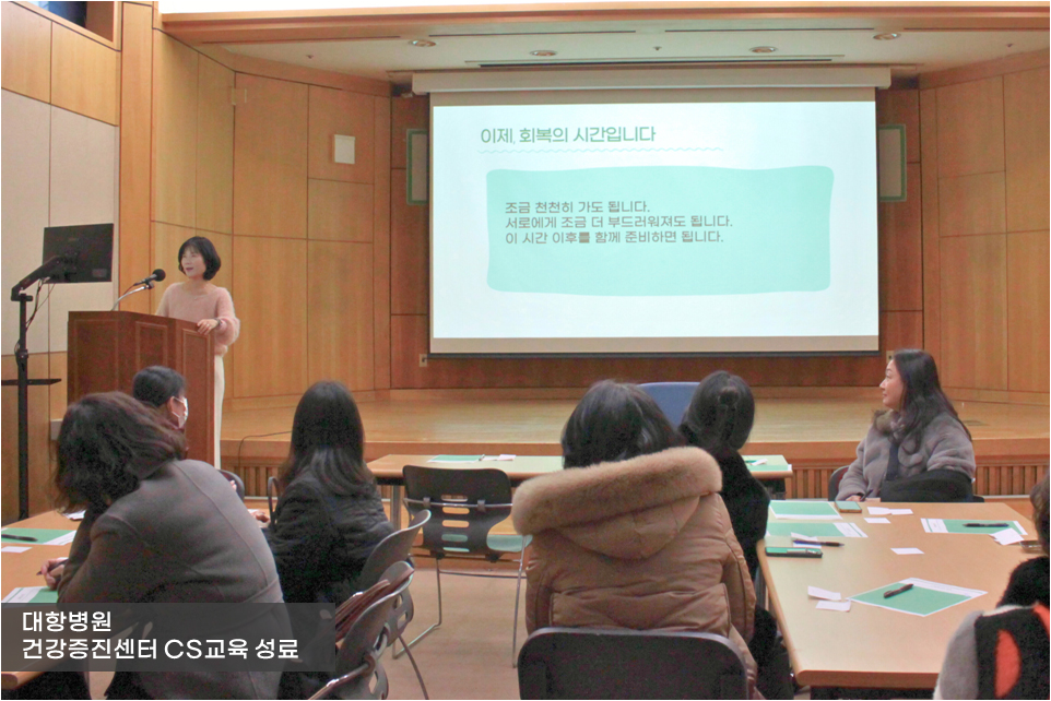 대항병원이 5일 (월) 동관 지하 1층 대항아트홀에서 건강증진센터 직원들을 대상으로 CS교육을 진행했습니다.
