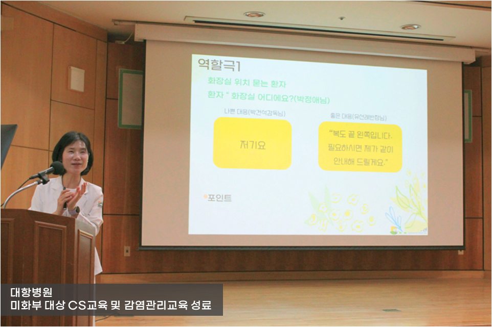 박미애 간호부장이 진행한 CS교육은 '병원을 다시 오게 만드는 환자경험서비스'에 대한 주제로 마련되었습니다.