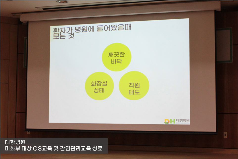 대항병원이 31일(화) 동관 지하 1층 대항아트홀에서 미화부 직원들을 대상으로 CS교육과 감염관리교육을 진행했습니다.