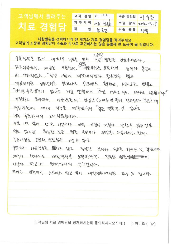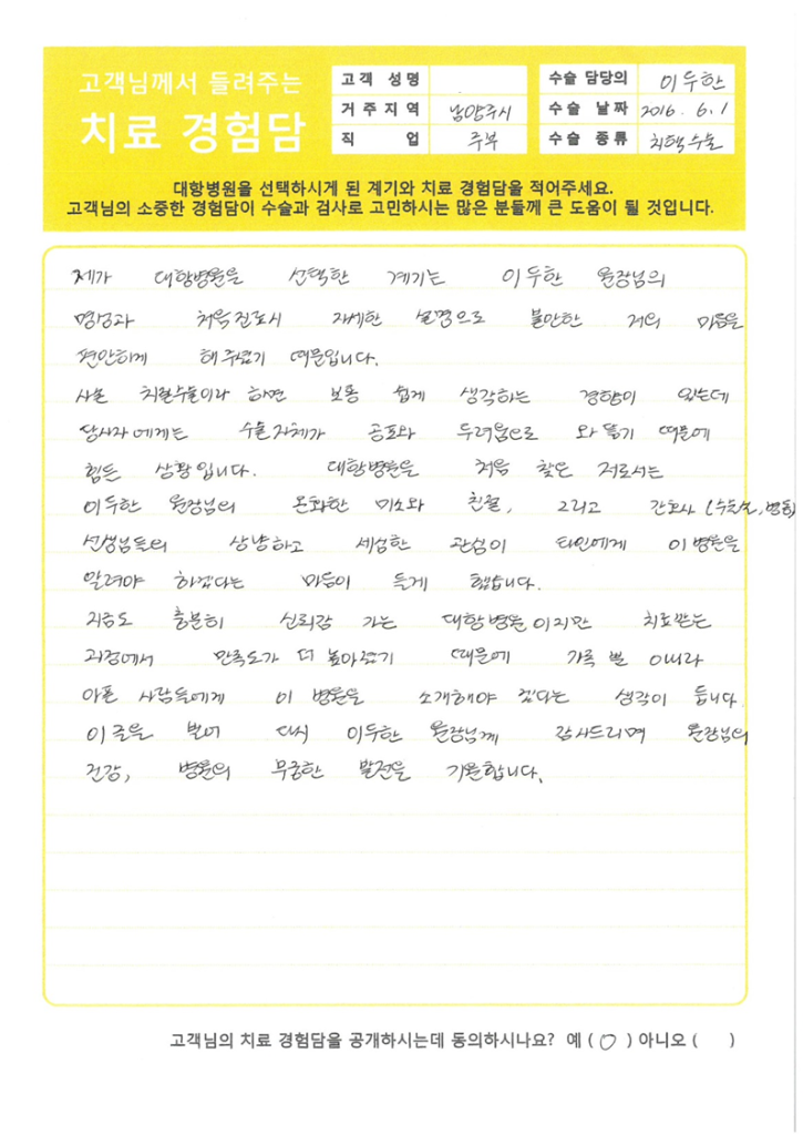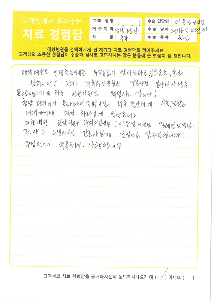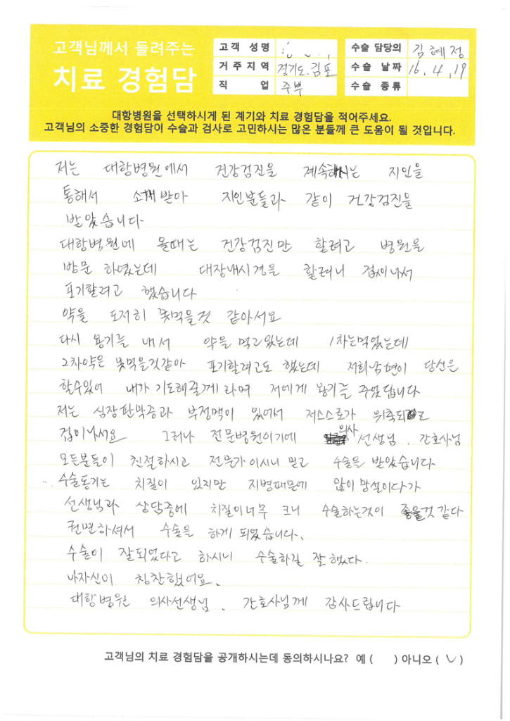 • 대항병원에서 치료 및 수술을 받은 환자분들의 생생한 이야기를 전합니다.