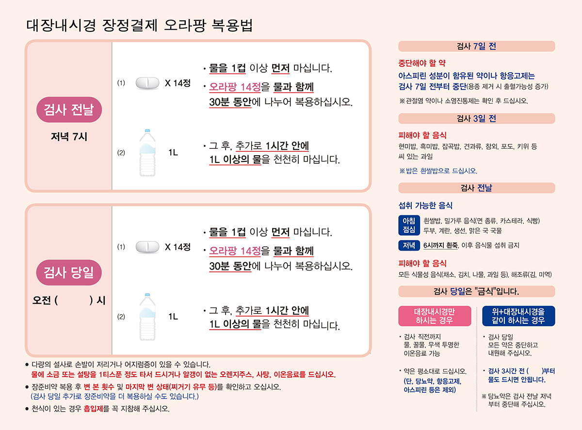 대장내시경검사 시 장정결제(오라팡) 복용법